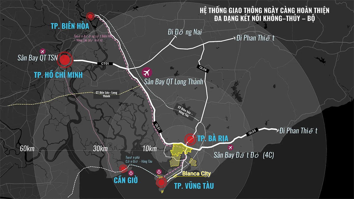 Tương lai sẽ kết nối trực tiếp qua tuyến đường sắt Biên Hòa – Vũng Tàu, đưa Blanca City trở thành đầu mối giao thông chiến lược của toàn miền Đông Nam Bộ.