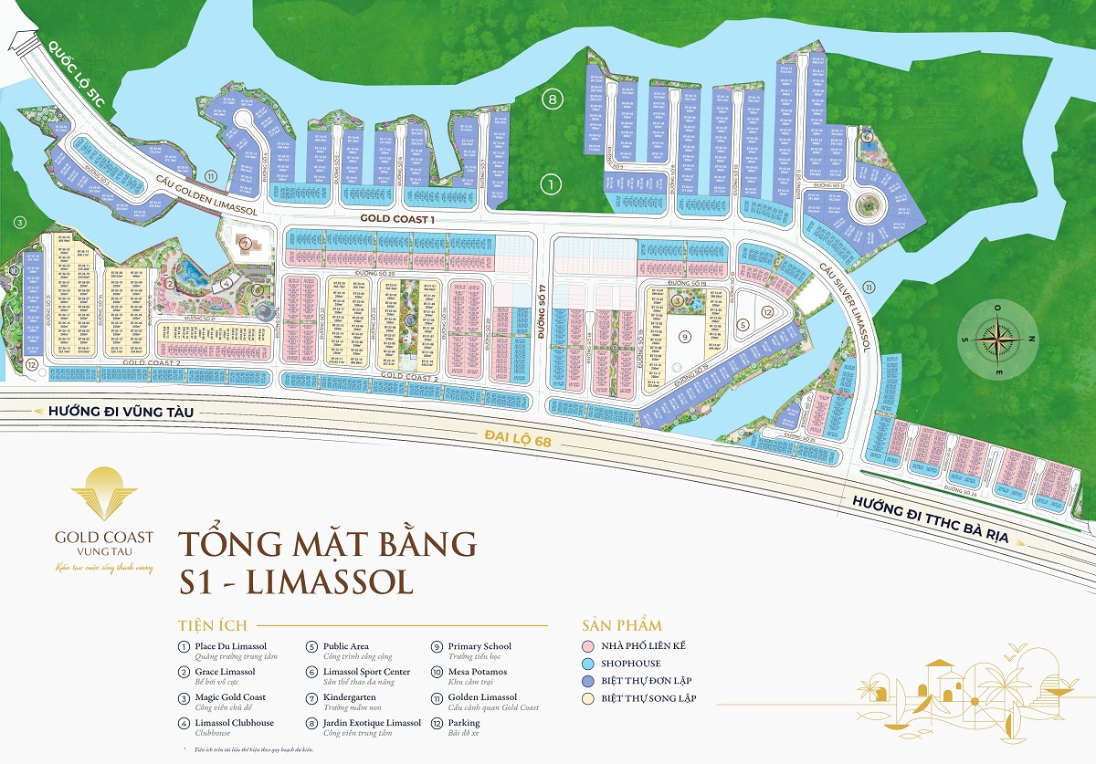 Dự án Gold Coast Vũng Tàu được quy hoạch bài bản trên quỹ đất rộng lớn, phân chia rõ ràng theo từng phân khu chức năng, tạo nên một tổng thể hài hòa giữa không gian sống, thương mại và nghỉ dưỡng. Trong đó, phân khu Limassol nổi bật với thiết kế đẳng cấp gồm các loại hình: